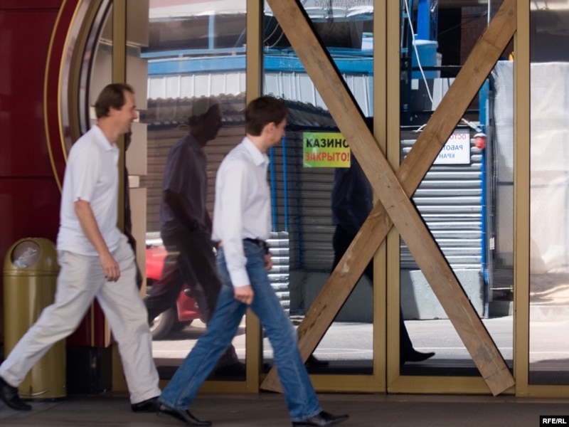Казиноҳои Новий Арбат ё Арбати Нав, кӯчае иборат аз силсилаи қиморхонаҳо дар Маскав, аллакай чароғҳои худро хомӯш кардаанд. Дар девори шишагини яке аз куҳансолтарин казиноҳои Маскав, бо номи Метелитса ду лавҳа овехта шудааст. Дар яке навишта шудааст, "ташаккур барои 16 соли эътимод" ва дар дигаре бино ба иҷора пешкаш мешавад.
