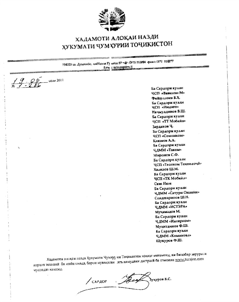 Мақомоти Хадамоти алоқаи вобаста ба ҳукумати Тоҷикистон аз ҳар гуна изҳори назар дар робита ба ин номаи худ ба ширкатҳои интернетӣ худдорӣ кардаанд.