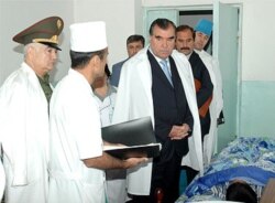 Эмомалӣ Раҳмон, раисиҷумҳури Тоҷикистон сарбозонеро, ки бар асари ҳамлаи мусаллаҳона ба корвони мошинҳои Вазорати дифоъ дар рӯзи 19 -уми сентябр дар дараи Камароб маҷрӯҳ шудаанд, дар бемористони артиш аёдат намуд.