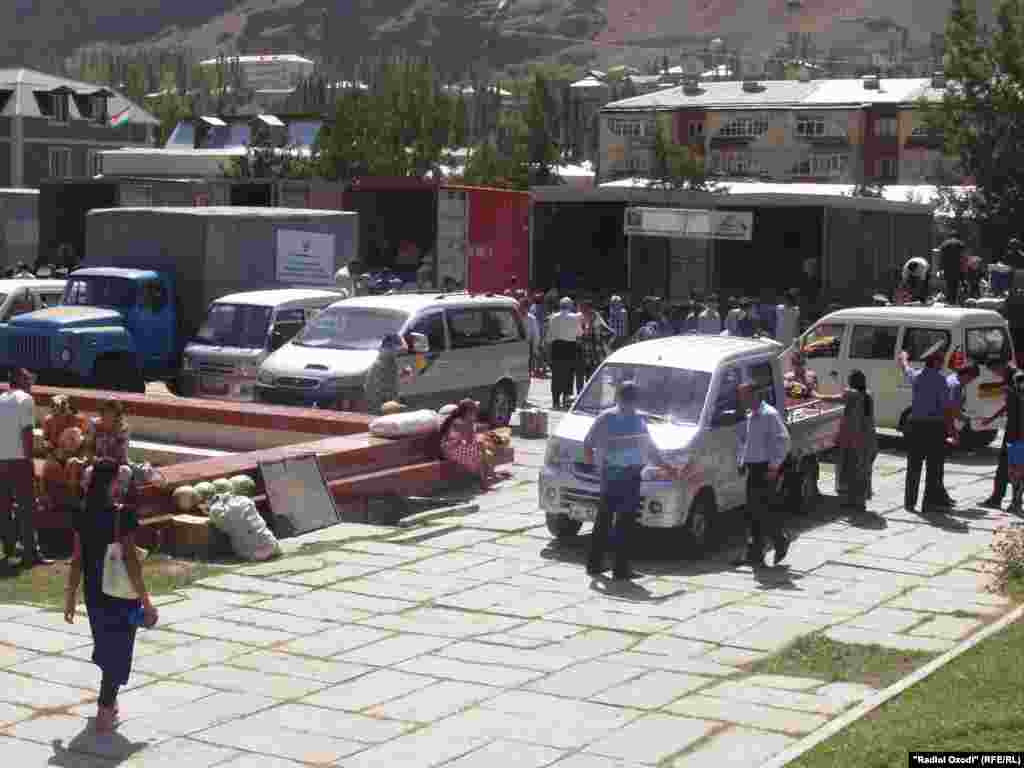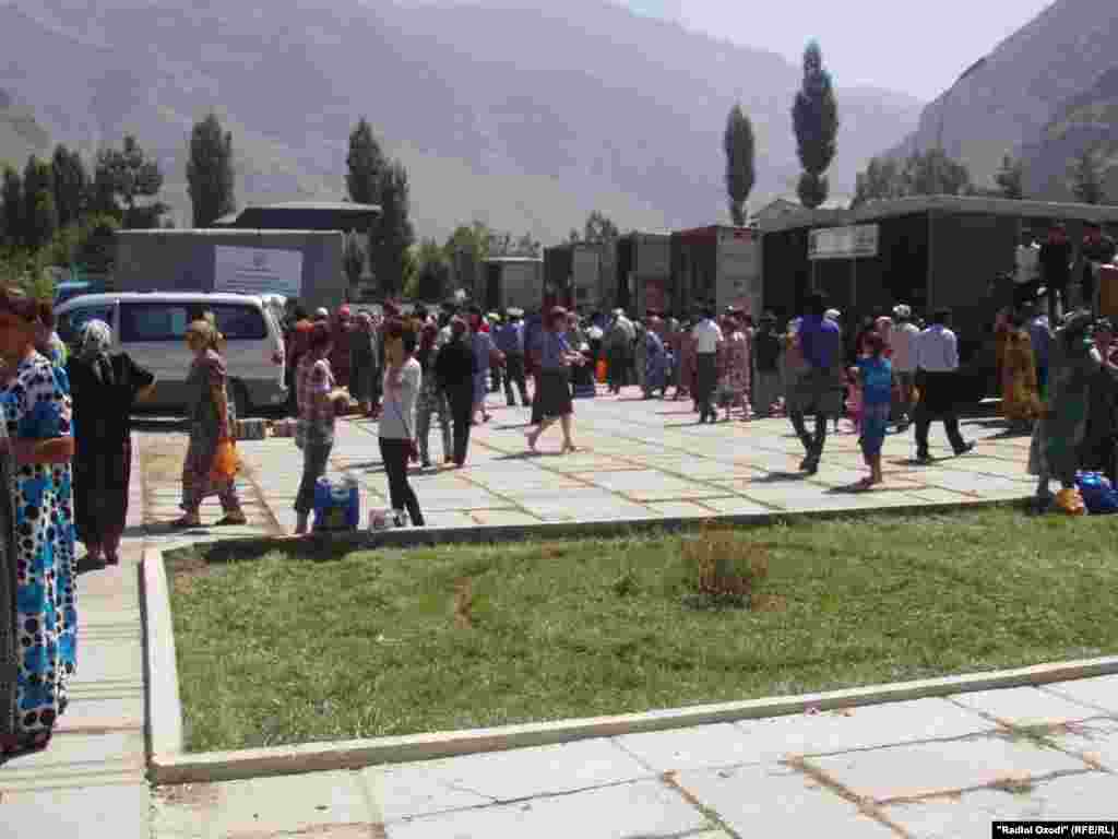Дар майдони "Ваҳдат"-и шаҳри Хоруғ, ки тайи тақрибан ду моҳи ахир шоҳиди ҳамоишҳои эътирозии мардум буд, имрӯз, 28-уми август, мардуми зиёде дар намоиш ва фурӯши маҳсулоти кишоварии вилояти Бадахшон ҷамъ омадаанд.