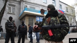 Дар ин бора мири Славянск Неля Штепа хабар дод ва гуфт, ки тақрибан ҳазор нафар вориди бинои ҳукумат шудаанд. Рӯзи шанбе, 12 апрел, рустаборҳо, ки худро аъзои “гурӯҳи ташаббускори Ҷумҳурии Донетск” муаррифӣ кардаанд, биноҳои шӯъбаи милиса ва бахши маҳаллии Хадамоти амнияти Украинаро ҳам забт намуданд. Ба навиштаи хабаргузориҳо амалиёти забти шаҳр аз он шурӯъ шуд, ки тақрибан 15 марди мусаллаҳ бинои шӯъбаи милисаро ишғол ва ҳама кормандон, ба ҷуз, навбатдорҳоро, аз бино берун карданд. Онҳо аз бинои шӯъбаи милиса тақрибан 400 туфангча ва беш аз 20 автоматро рабуданд.