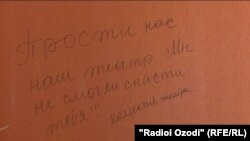 Аммо на ҳунармандон ва на раҳбарияти театр ба баҳонаи он ки "ҳарфашон то ин дам ба гӯши касе нарасидааст ва ҳоло хоҳад расид?" дар бораи тахриби бинои театр суҳбат накарданд. Танҳо дар деворҳои ҳоло вайронаи ин театр аз номи ҳайати кормандонаш навишта шудааст, ки “Моро бибахш, натавонистем туро наҷот диҳем.”