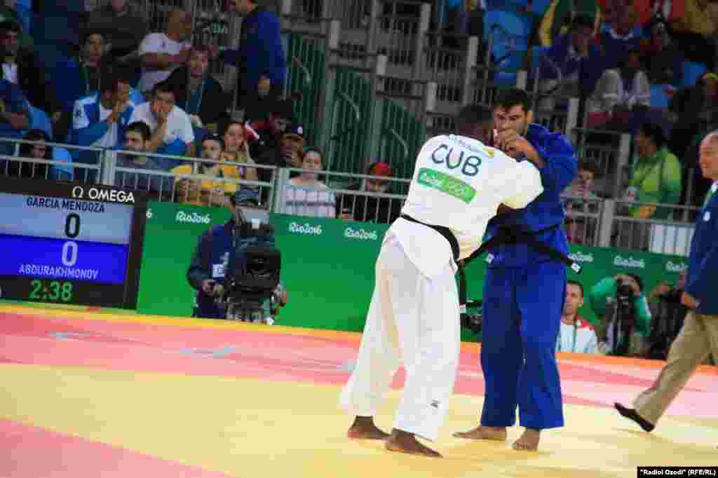 Муҳаммадмурод Абдураҳмонов, гуштигири шинохтаи тоҷик, дар қувваозмоии нахустинаш дар мусобиқаи ҷудо аз рӯи барномаи Бозиҳои XXXI тобистонаи олимпии Рио-де-Жанейро аз рақибаш Алекс Гарсиа Мендоза аз Куба шикаст хӯрд.