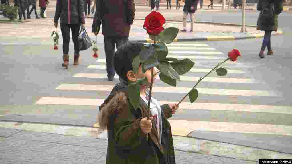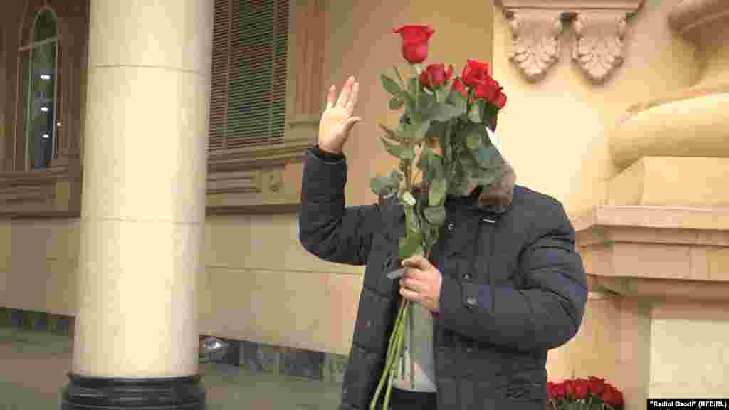 Ин фаъоли ҷамъиятӣ рӯзи 5 декабр дар кӯчаҳои Душанбе бо иттифоқи ҳамсараш – журналисти дигари радиои давлатӣ Ҷумъаи Мирзо ба мардони раҳгузар якдонагӣ гул тақдим кард, то ки ба хонаҳояшон рафта, дили модару хоҳар ва ҳамсарони худро ба даст оранд.