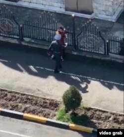 Саҳнаи бархӯрди милиса бо ин зан аз баландии сохтмоне наворбардорӣ шудааст. Дар ин навор дида мешавад, ки раҳгузарон корманди милисаро бо садои "ин зан бемории рӯҳӣ дорад", талош мекунанд аз амалаш боздоранд, вале зоҳиран асар намекунад.