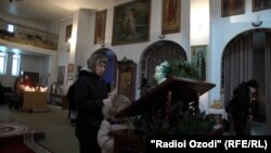 Дар даромадгоҳи калисои православӣ дар шаҳри Душанбе аз субҳи барвақт теъдоде аз талбандаҳои солхӯрда истода, ибодаткунандаҳоро пазироӣ мекарданд. Эҳсос мешуд, ки хуруҷи бемории COVID 19 дар Тоҷикистон аз ҳузури бештари пайравони ин мазҳаб ҷилавгирӣ кардааст.