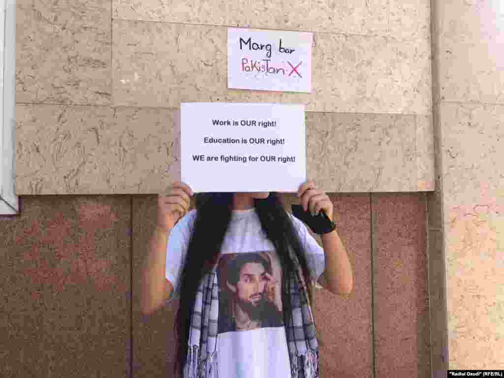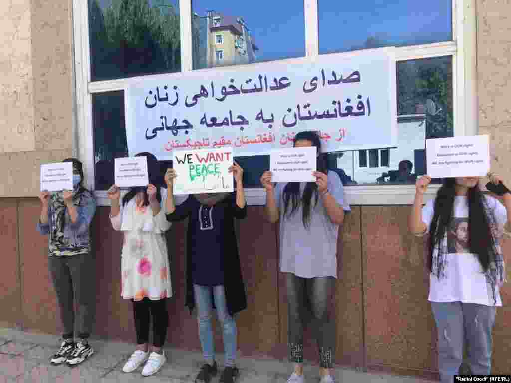 Субҳи 14-уми сентябр даҳҳо нафар аз занону духтарони афғони муқими Тоҷикистон дар Сафорати Афғонистон дар Душанбе ҷамъ омада, алайҳи Толибон ва Покистон шиор сар доданд.