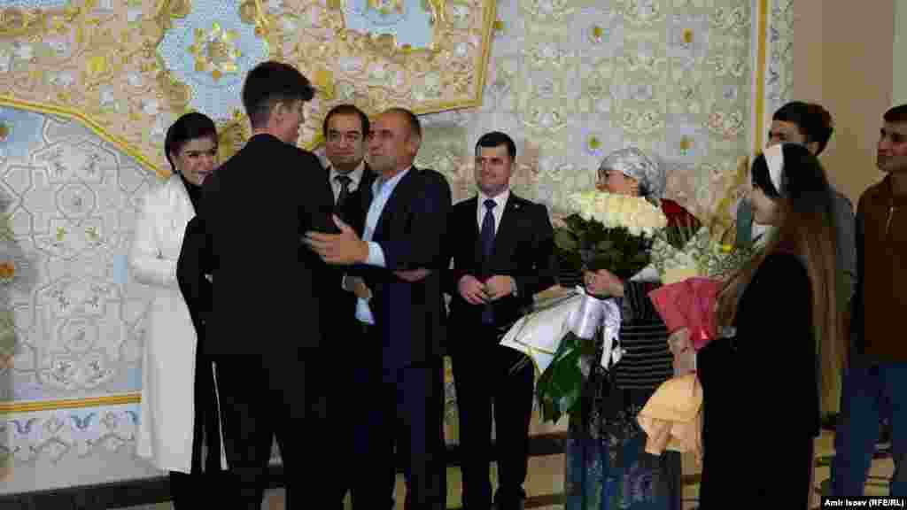 Фаррух Ҳасанов, овозхони 25-солаи тоҷик, баъди пирӯзӣ дар тарҳи мусиқии "Ну-ка, все вместе!" дар Русия ба Душанбе баргашт. Даҳҳо нафар шоми 28-уми ноябр ба пешвозаш ба фурудгоҳ шитофтанд.
