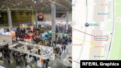 Радиои Озодӣ ҳамчунин маълум кард, ки барои маркази "Рубикон" толори D ва қисме аз толори С-и Маркази намоишгоҳи "Патриот", ки ҳар ду дар қисми ҷанубии маҷмаа ҷойгиранд, ихтисос дода шудааст. Дар тасвирҳое, ки аввали моҳи апрели соли 2025 аз намоишгоҳи "Мотовесна 2025" аз толори бардошта шудаанд, ҳамон тӯрҳои рӯйпӯшкунандае, ки толори D-ро пӯшонидаанд, дида мешаванд, ки он ҷо қароргоҳи "Рубикон" аст.