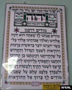 Навиштаи динии яҳудӣ, ки дар девори танҳо каниса дар Тоҷикистон овезон аст