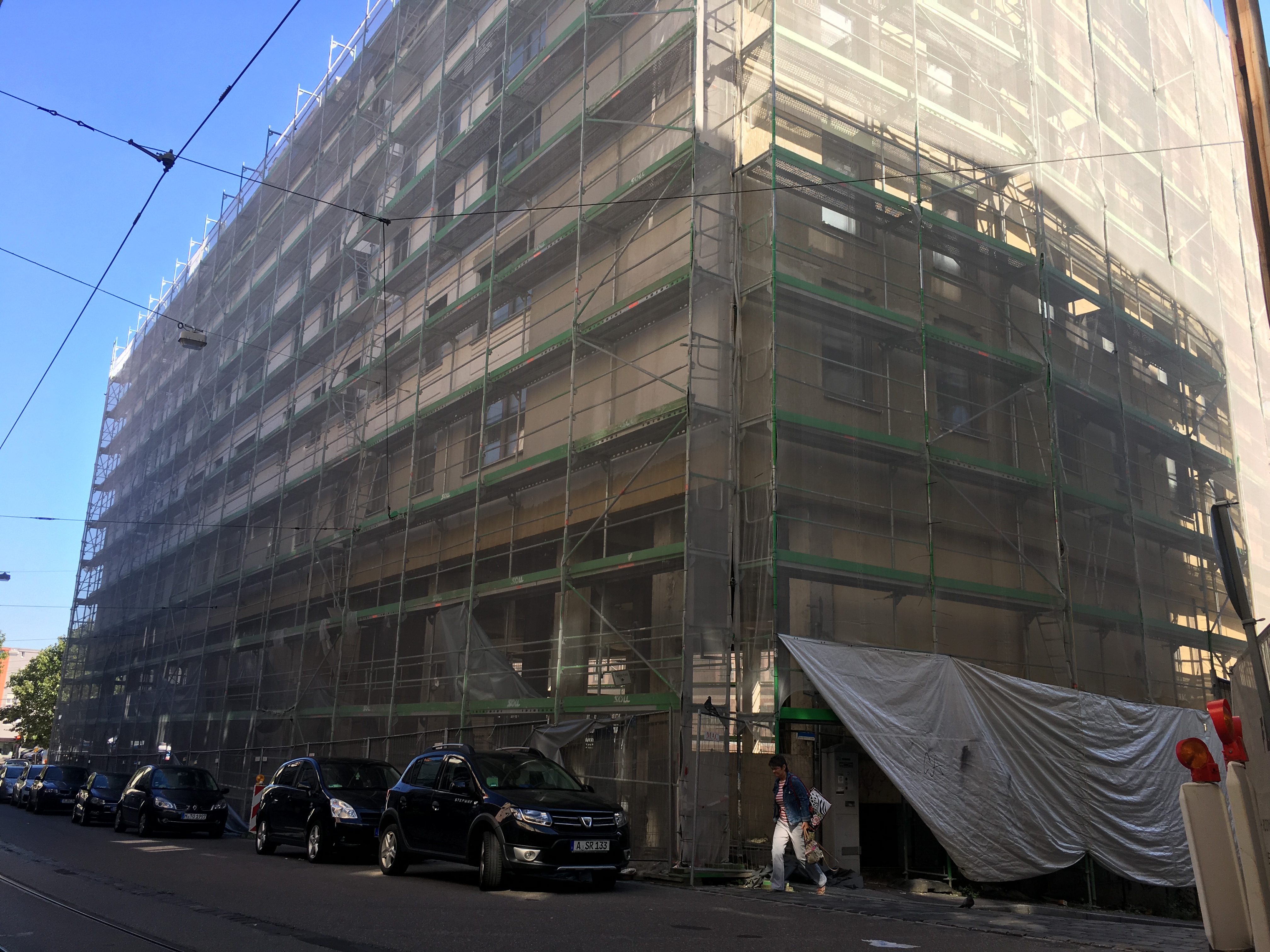 Аз соли 2015 ба ин сӯ, муҳлатҳои мухталифе барои анҷоми сохтусоз дар ин бинои ҳаштошёна бо меъмории баъдиҷангӣ эълом шудааст. Ин сохтмон дар роҳи Шмидберг – роҳи байни шарқу ғарб дар маркази Авгсбург, қомат афрохтааст. Қаблан инҷо сохтмони меҳмонхонае пешбинӣ шуда буд, ки мебоист то соли 2016 ба анҷом бирасад . Ҳоло, қарор аст, ин бино ба як муҷтамаи маскунӣ табдил шавад, агарчи муҳлати анҷоми сохтусозаш моҳи марти 2019 ба пойн расид .