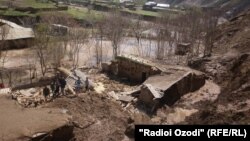 Бар асари боришоти шадиди шаби 12 ба 13 апрел ва лағжидани теппа дар рустои Одинабойи ноҳияи Шӯрообод панҷ хона зери хок монд ва дар натиҷа 13 нафар, ки 7 тани онҳо кӯдакон буданд, ба ҳалокат расиданд. Ин аксҳоро ҳам аз рустои Одинабойӣ хабарнигори маҳаллӣ Маҳмудҷон Раҳматов барои Радиои Озодӣ фиристодааст: