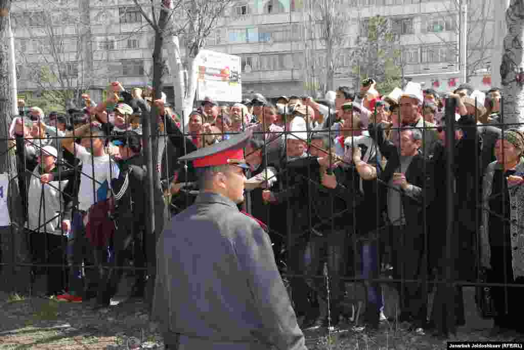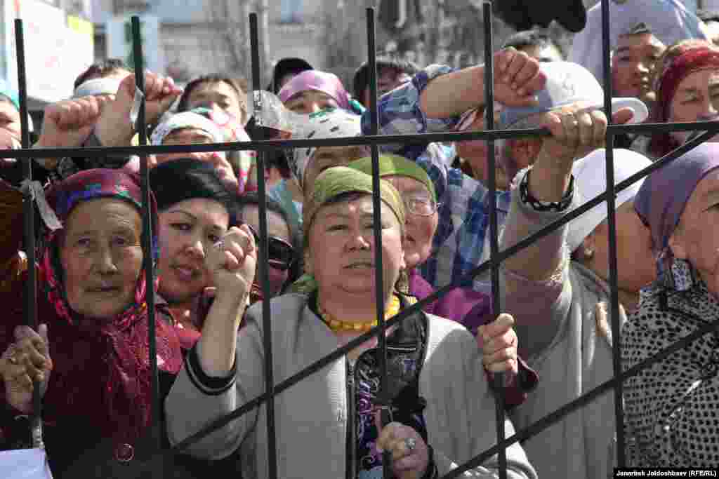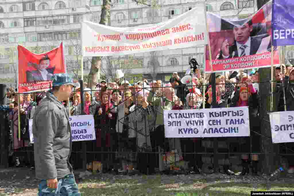 Рӯзи 29 март додгоҳи Первомайскии шаҳри Бишкек се сиёсатмадори мухолифи ҳукуматро ба мӯҳлати яку ним сол ба зиндон фиристод. Раиси ҳизби Ота Ҷурт Қамчибек Тошиев, муовини раиси парлумони Қирғизистон Талант Мамитов ва узви ҷиноҳи ҳизб дар Жогорку Кенеш Содир Жапаров аз рӯи банди 295-уми Кодекси ҷиноӣ “Даъват барои аз роҳи зурӣ тағйир додани сохти конститутсионӣ” айбдор шуданд. Акси тарафдорони мухолифин: бахши қирғизии радиои Озодӣ