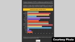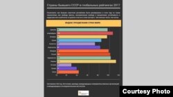 Озарбойҷон бо касби ҷойгоҳи 106 ва Украина бо мавқеи 112 вазъи бадтаре доранд. Пешсафони ин гурӯҳи кишварҳои пасошӯравӣ кишварҳои соҳили Балтик мебошанд, ки ҳамзамон шомили 50 кишвари беҳтарини ин феҳраст арзёбӣ шудаанд.