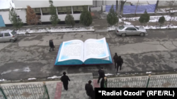 Муҷассамаи китоби "Тоҷикон дар оинаи таърих"-ро муваққатан дар назди маорифи шаҳри Ҳисор гузоштаанд ва масъулони маориф ба хотири, ба гуфтаи онҳо, тарбияи эҳсоси ватандӯстӣ шогирдони мактабро ба назди муҷассама меоранд. Ин асар соли 2002 чоп шуда, таърихи тоҷиконро аз панҷ ҳазор соли пеш то асри 20 бозгӯ мекунад.